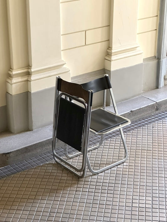 Set of two “Tamara” folding chairs by Arrben, Italy 1970s, chrome and dark brown leather