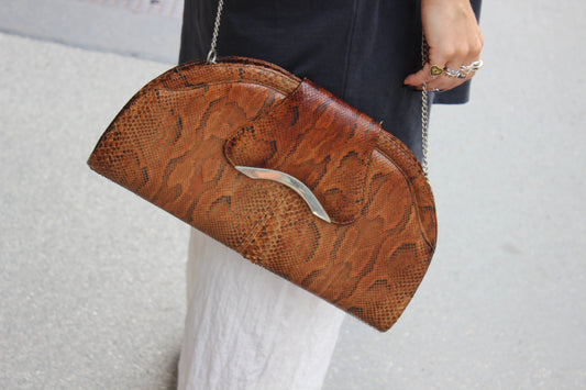 Vintage Snake Skin Handbag – “Elvira” – 70s Glam, Silver Details, Shoulder Bag & Clutch