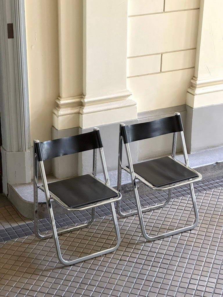 Set of two “Tamara” folding chairs by Arrben, Italy 1970s, chrome and dark brown leather