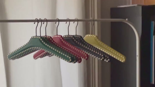 Set of 7 vintage skai hangers with studs. Mid-century. Germany, 1960s