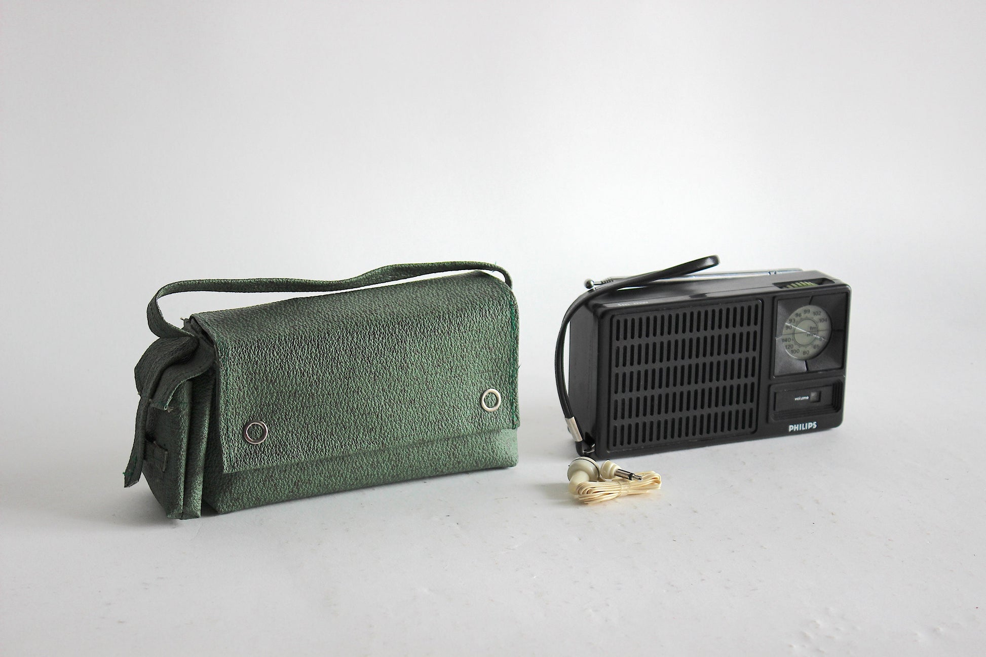 Covering both medium wave and FM (UKW) frequency ranges, this radio is versatile in tuning to your favorite stations. Powered by four 1.5-volt dry batteries, it boasts a dynamic speaker without an exciter coil, ensuring a consistently vibrant sound. Encased in durable thermoplastic, it's built to withstand the rigors of travel. With dimensions of just 140 x 80 x 40 mm, it's aptly nicknamed the "pocket radio" for its portability, making it an ideal travel companion. The original Philips carrying case is included, along with unused original Philips headphones made of Bakelite.
