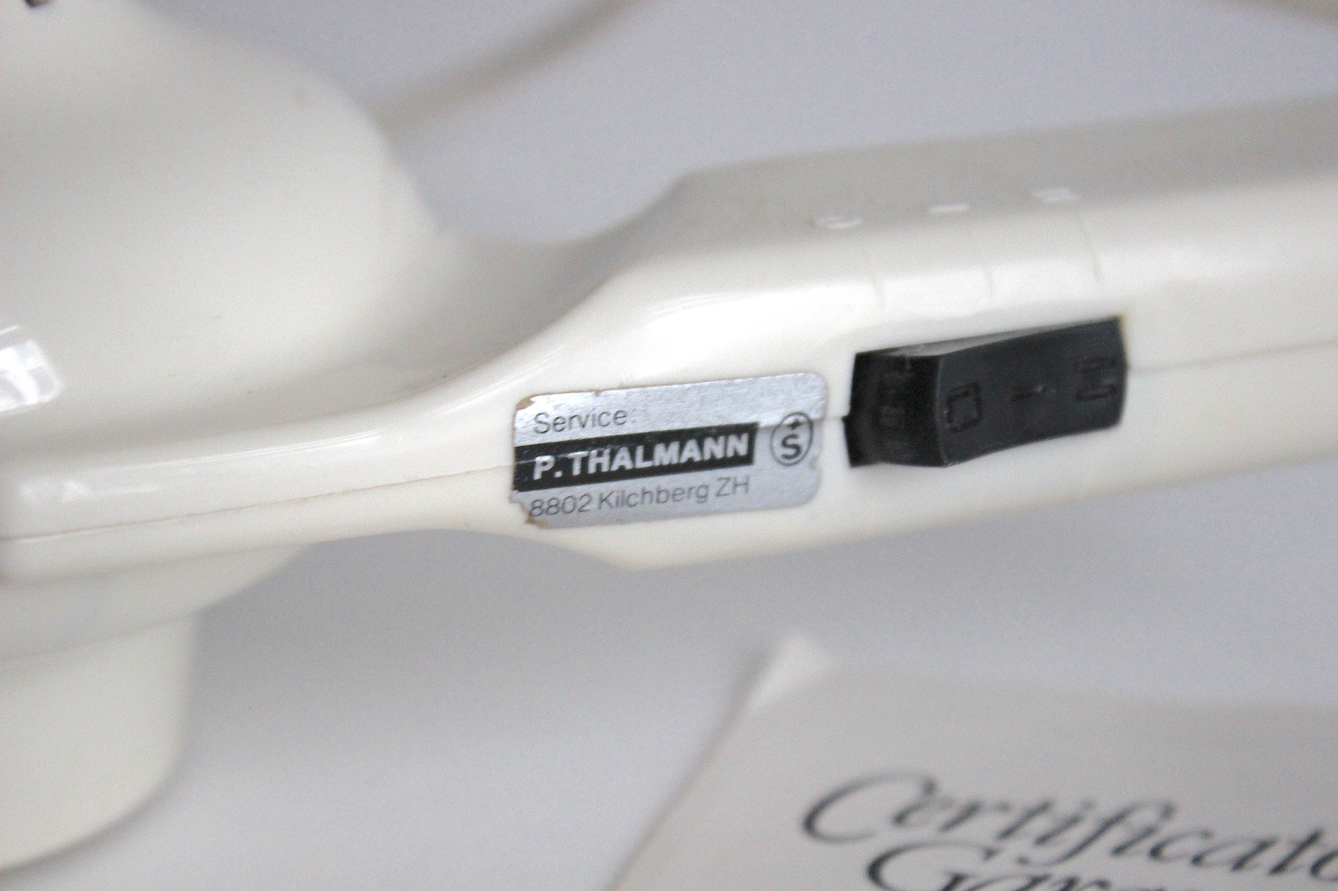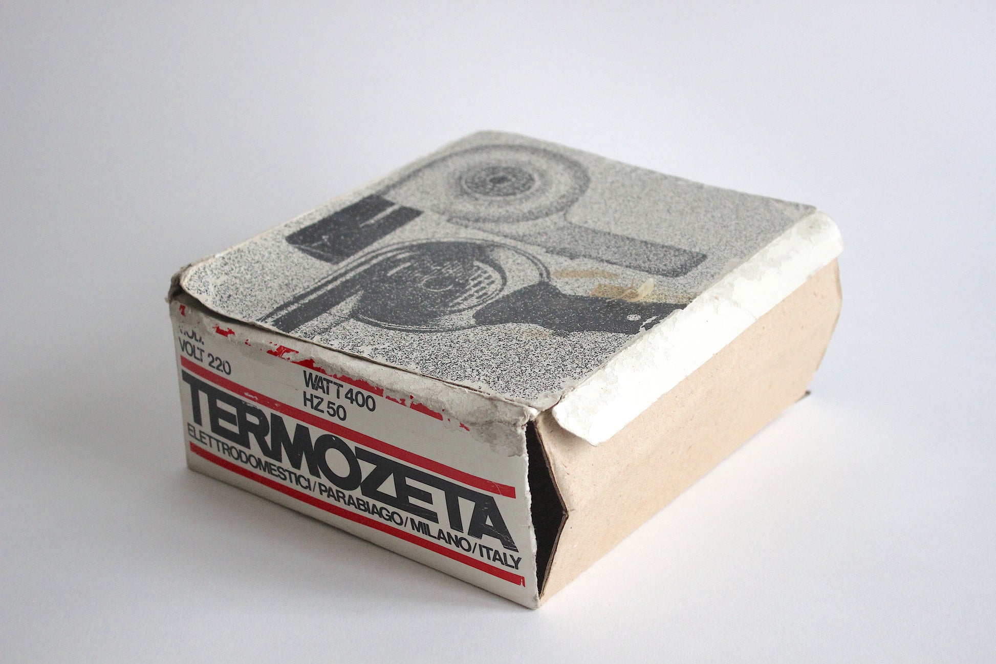 Unveil the essence of '80s style with the Termozeta HZ 50 hair dryer, a pristine piece of Italian engineering. Found in Ibiza, this untouched beauty comes complete with its original packaging, warranty, and instructions. It's a time capsule at a perfect vintage 10/10 condition, never used. The box tells a different story, at an average 5/10, it whispers tales of its journey through time. A chic addition to any collector's array or a stylish throwback for your daily routine.