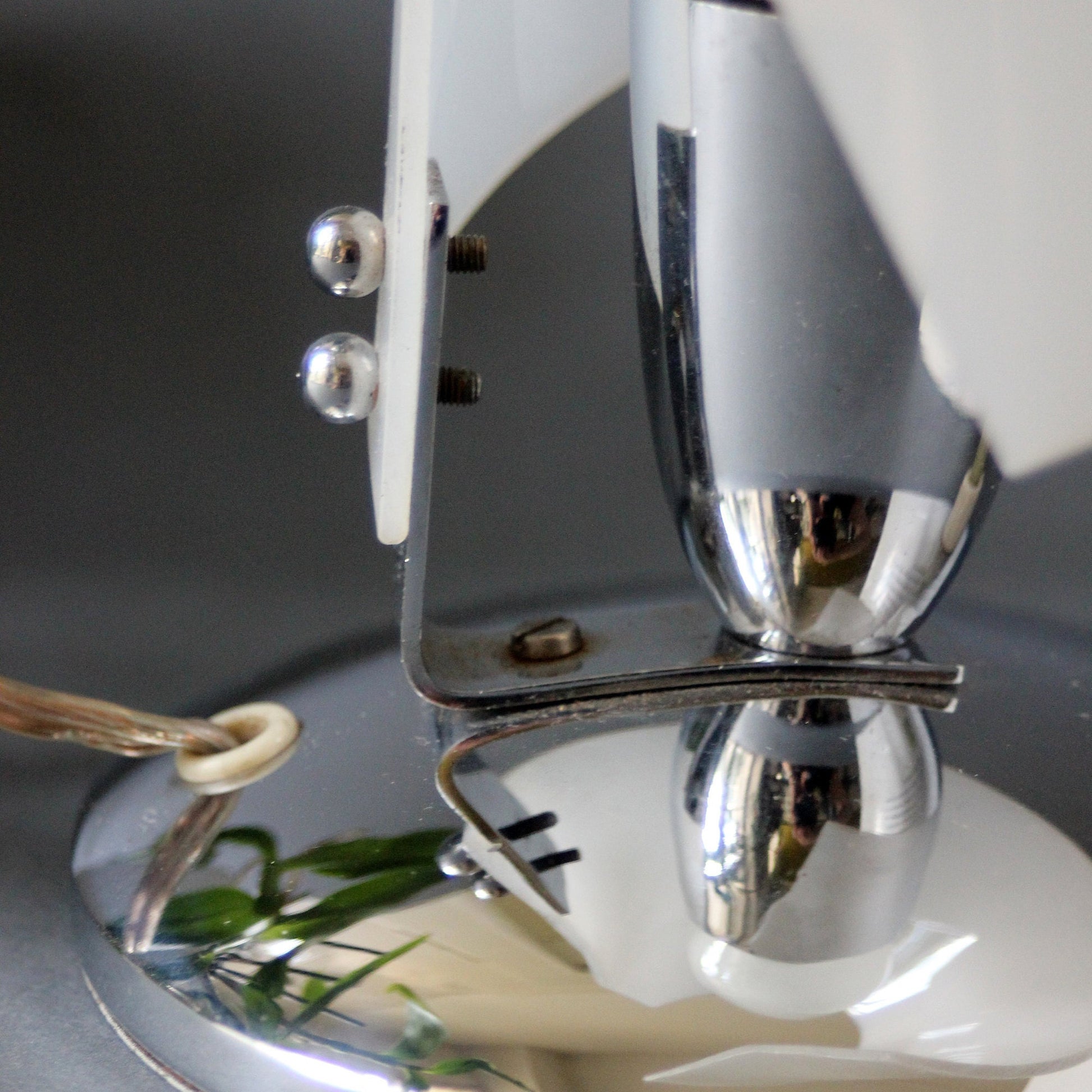 Light metal frame and white plastic lampshade. Original wiring.