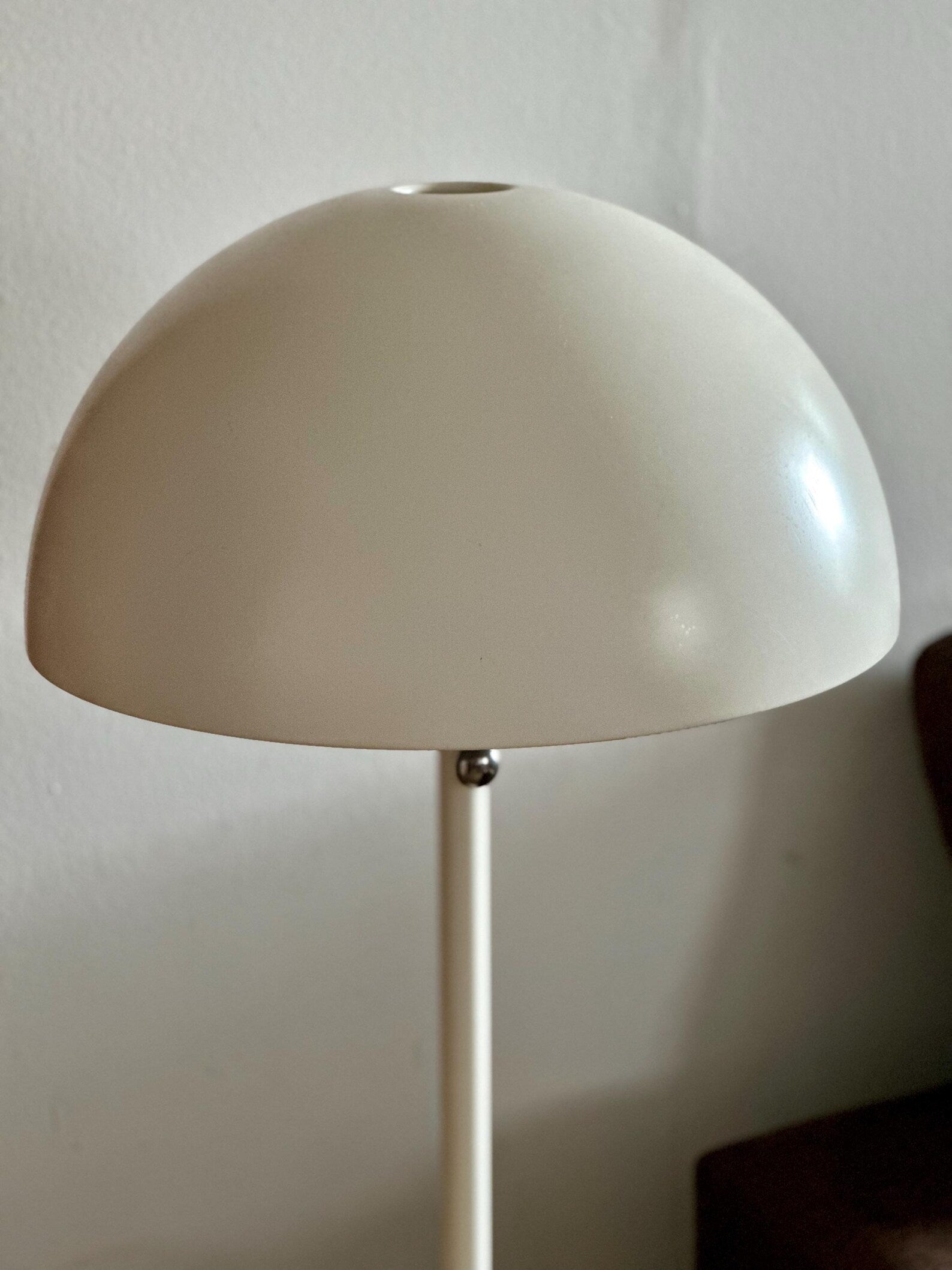 It’s simple: a white dome shade, slim stem, round base. A mushroom-shaped glow that feels very 70s space age, filtered through IKEA's clean lines. Nothing fancy, but it works — and that's why it's still here, looking fresh twenty years later.