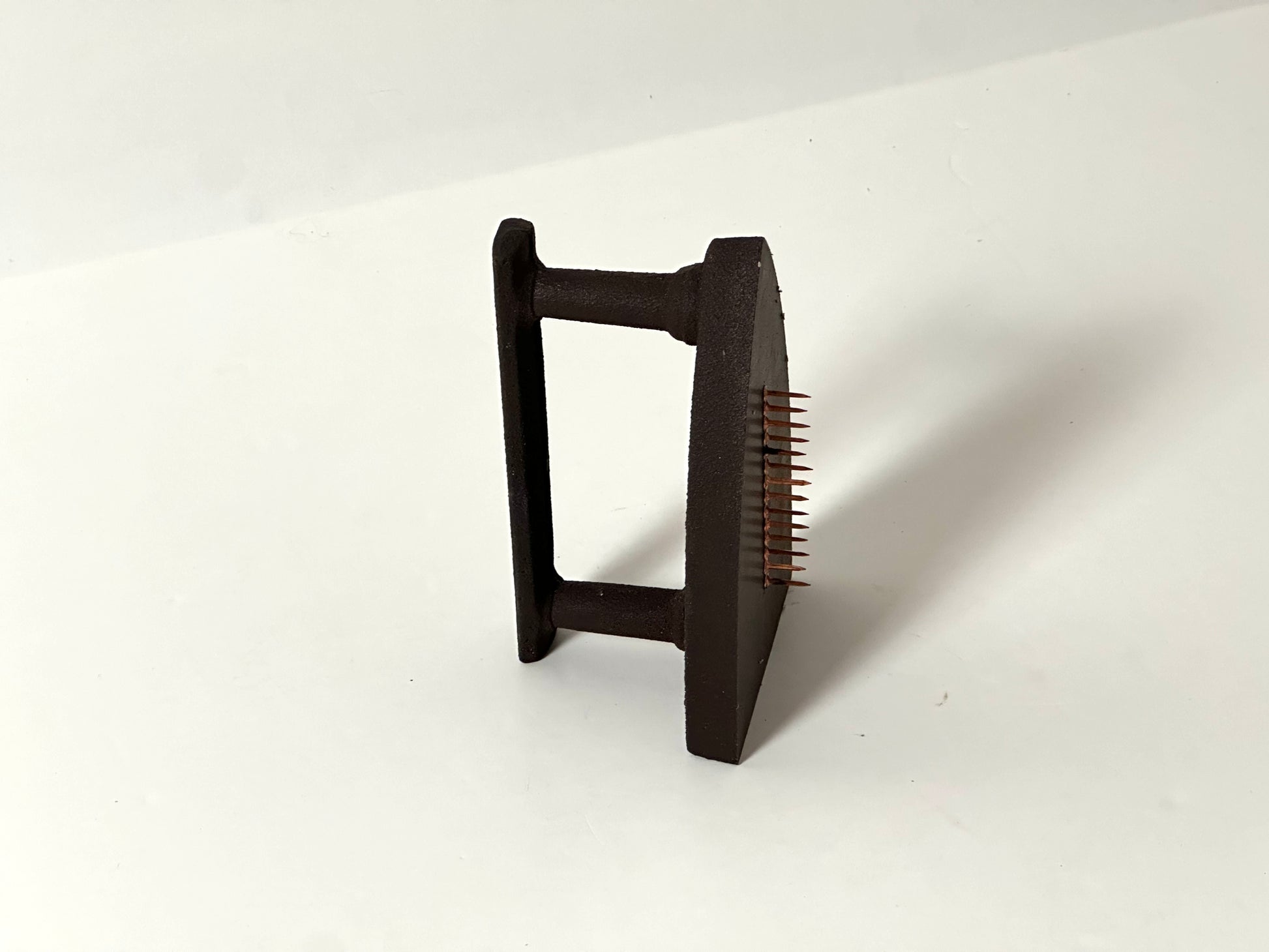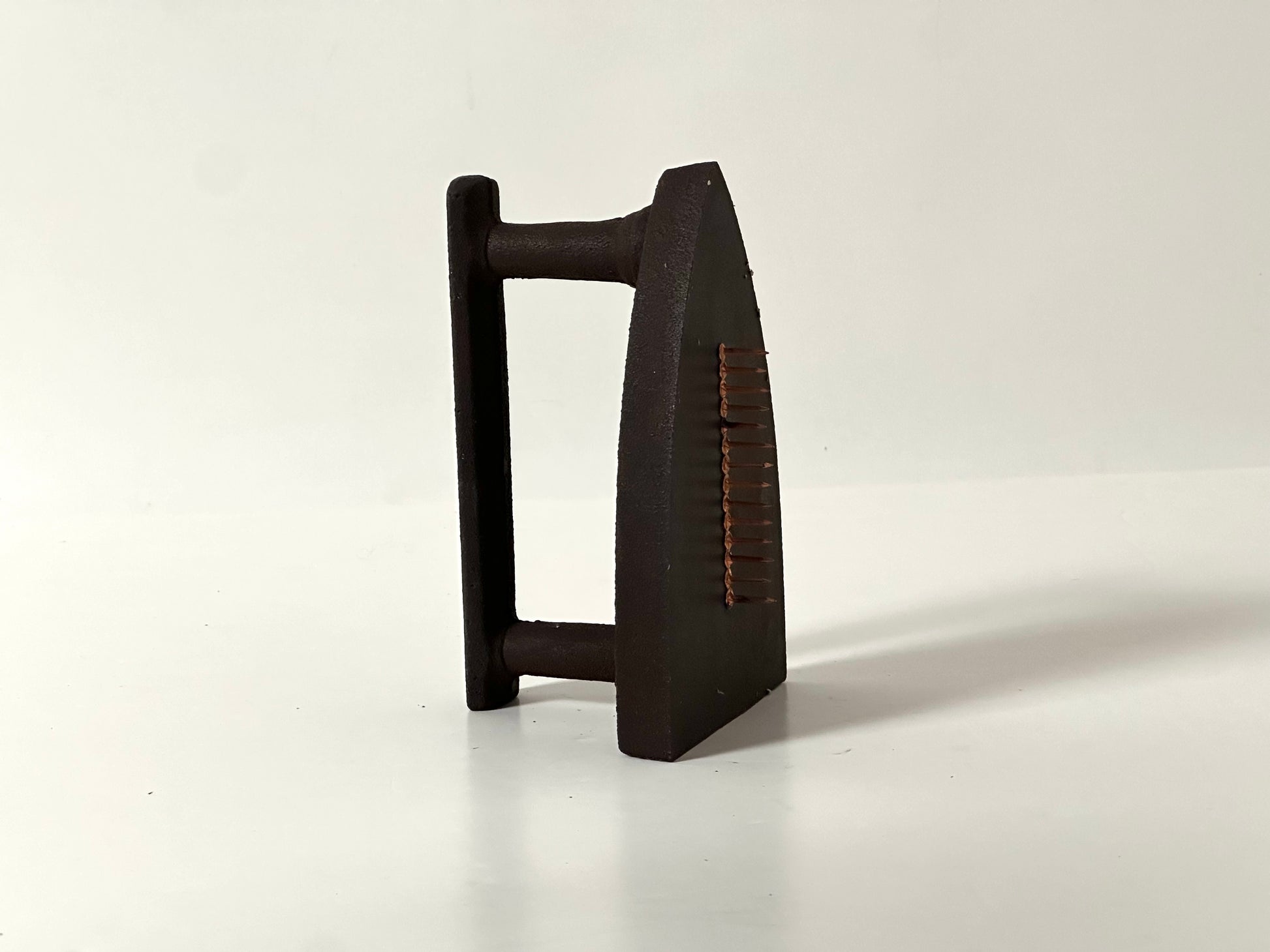 The original object — an iron with fourteen nails fixed to its sole — disappeared during the exhibition and has never been recovered.