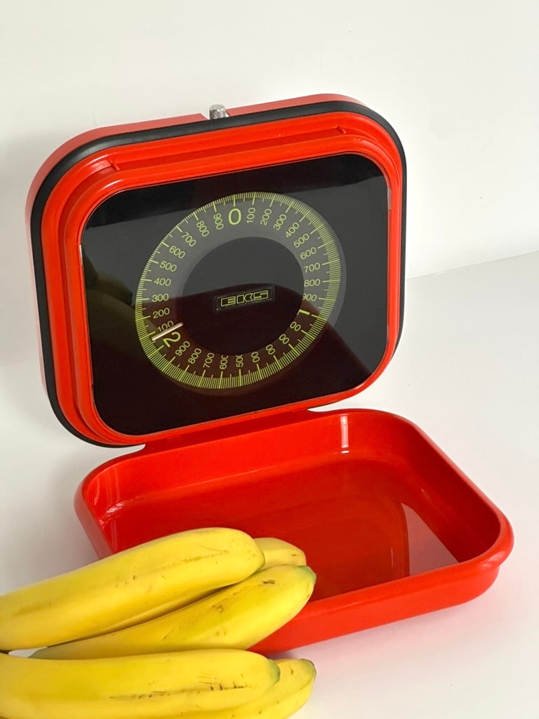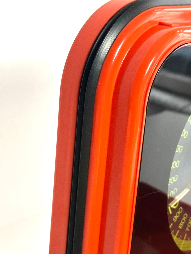 Orange plastic, bold graphic dial, big numbers you can actually read. Made by EKS, a Swedish manufacturer known for simple, no-nonsense household tools.