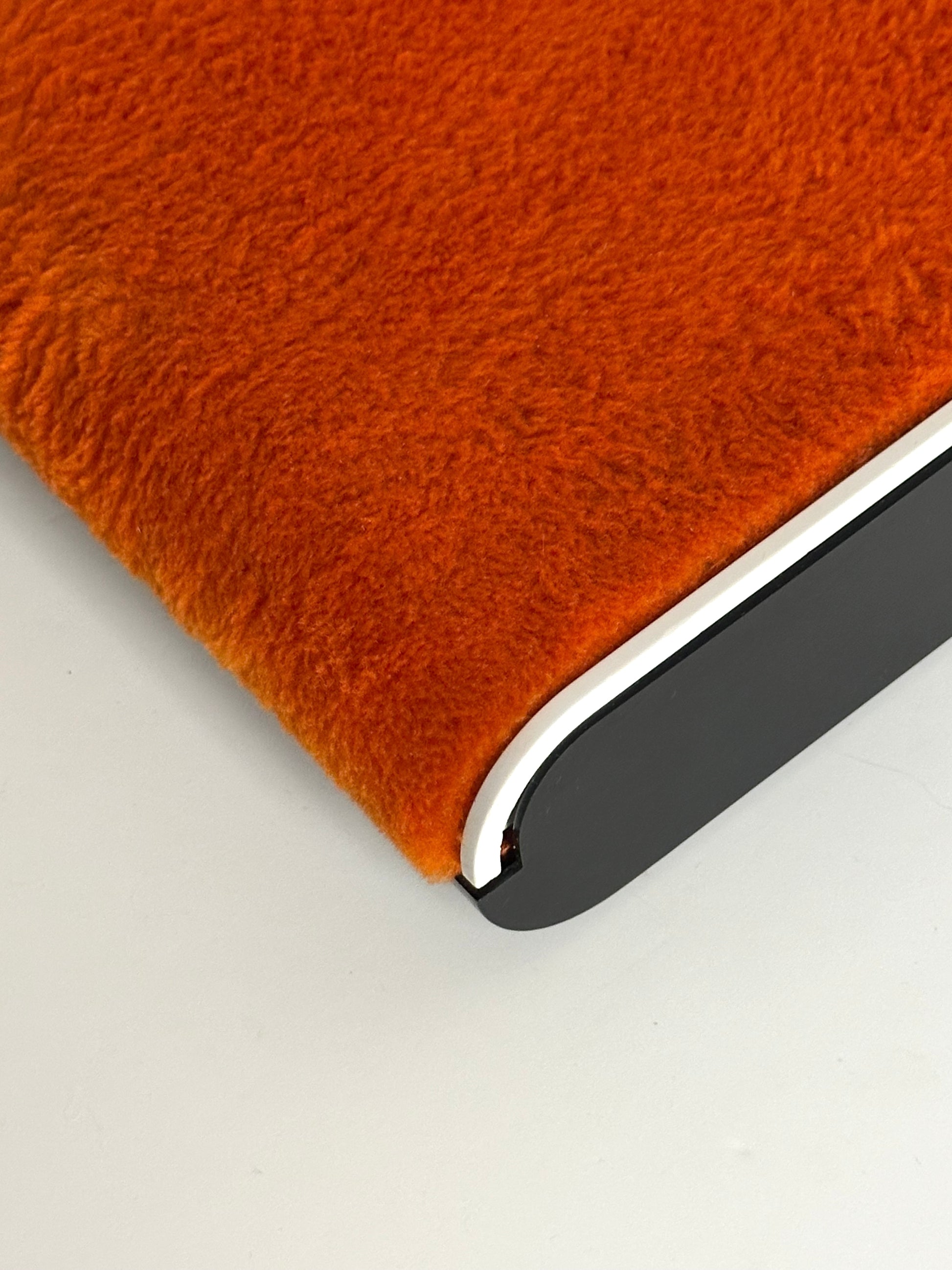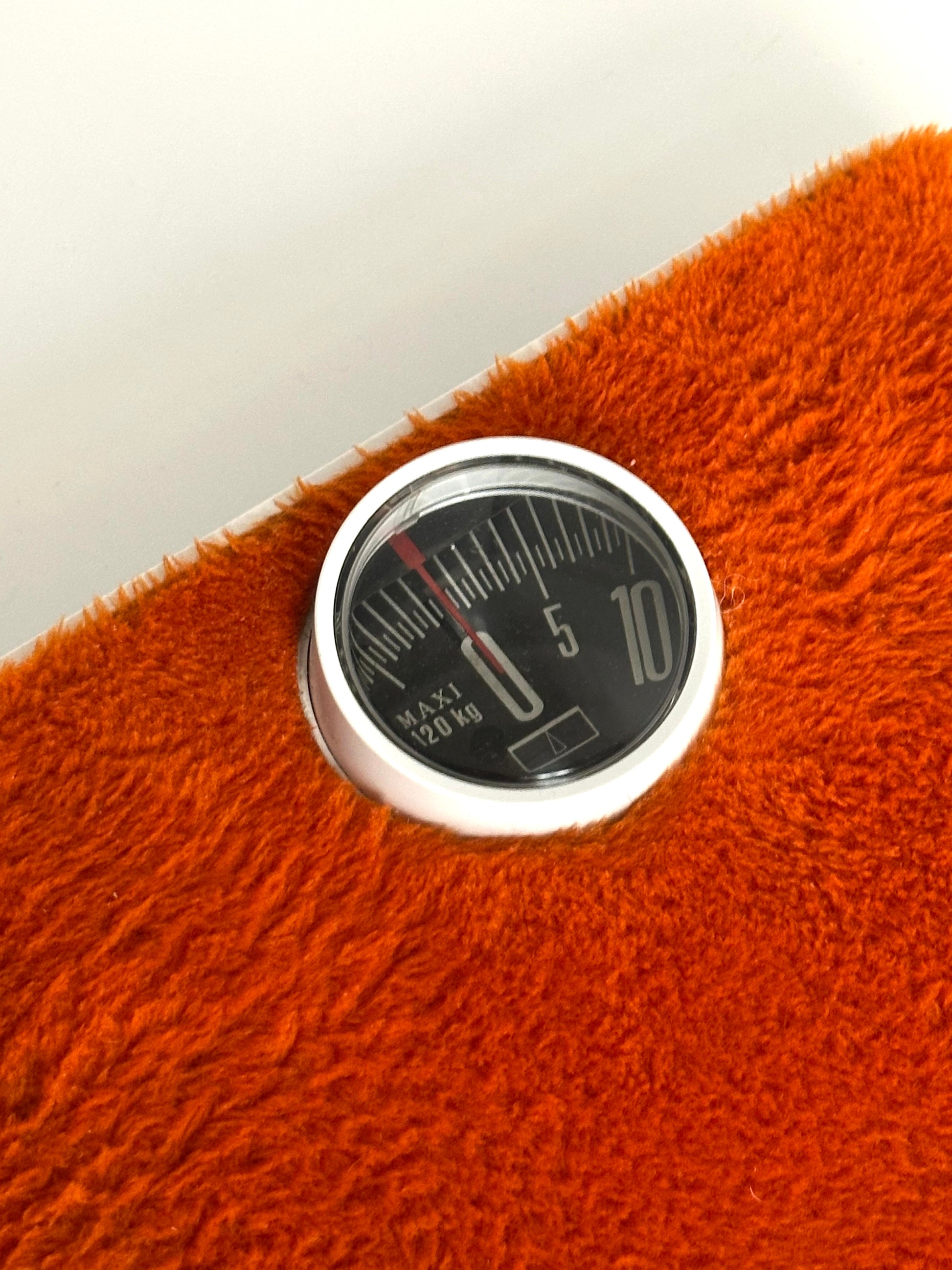 This Terraillon bathroom scale comes from the 1970s. You step on it, it gives you a number, and that number can go up to 120 kg. That's the whole experience. The orange shag on top makes it slightly more pleasant on your feet, but it doesn't soften the message.