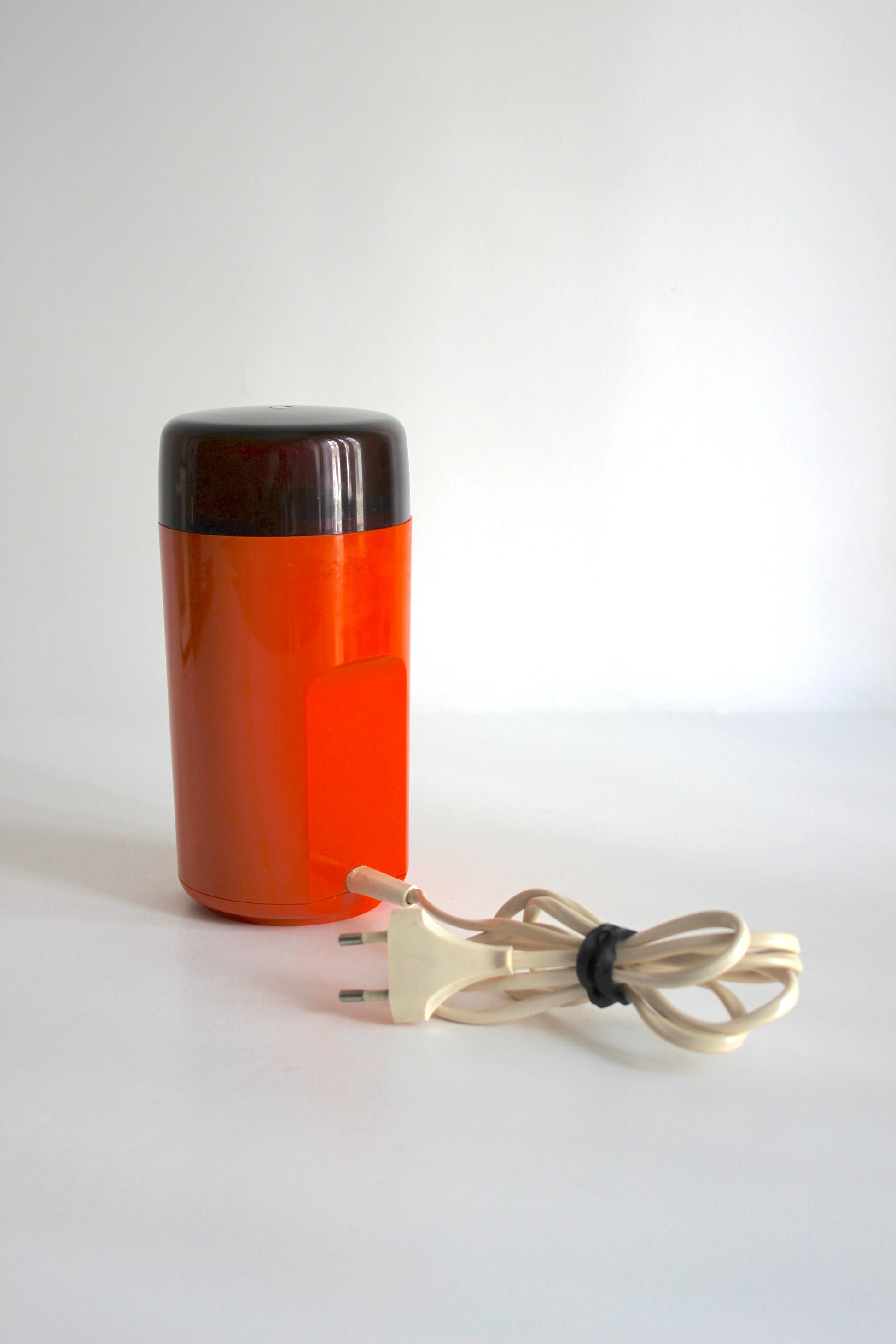 Vintage Rowenta electric coffee grinder · orange + smoked plastic · Germany, 1970s