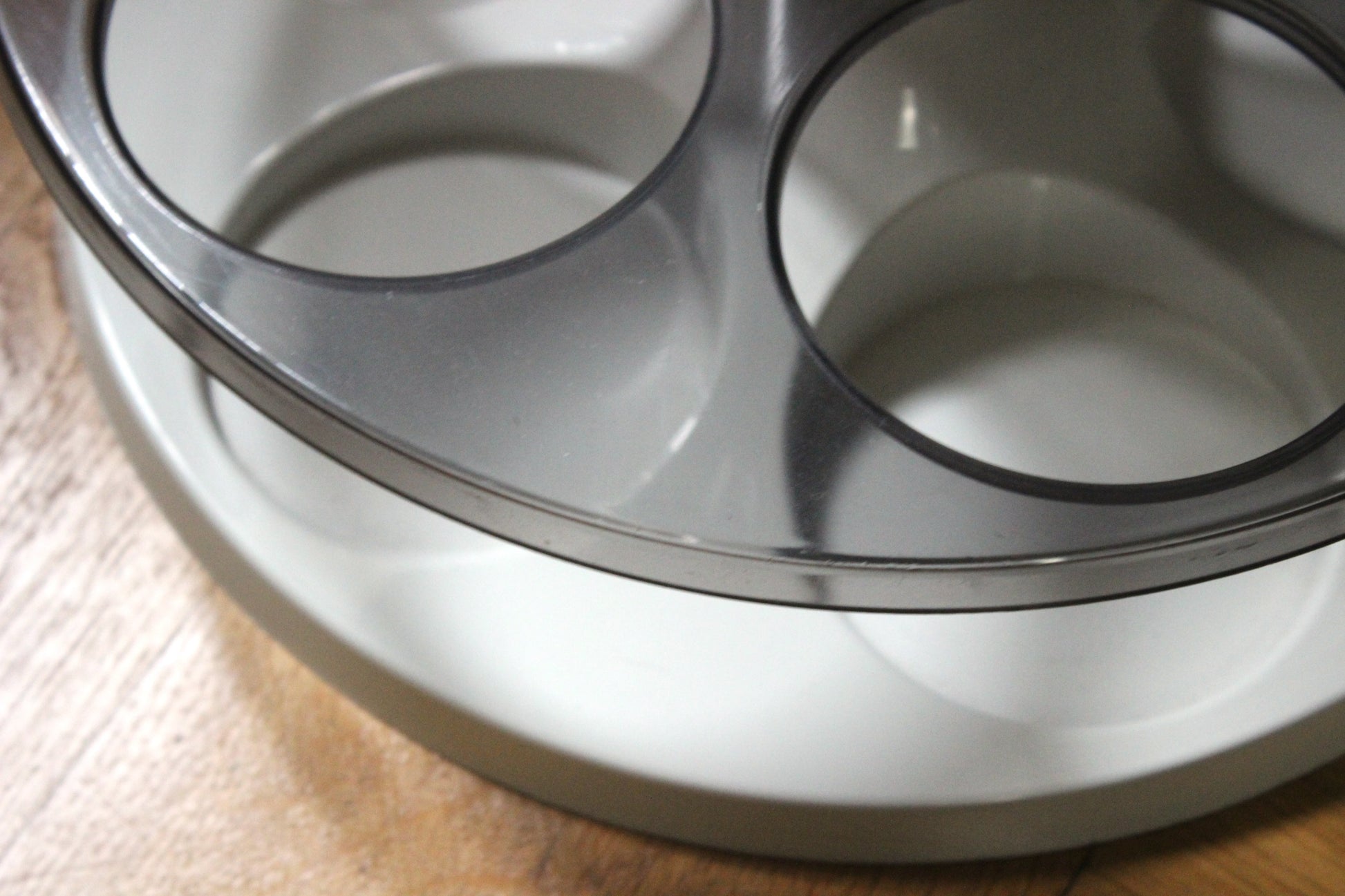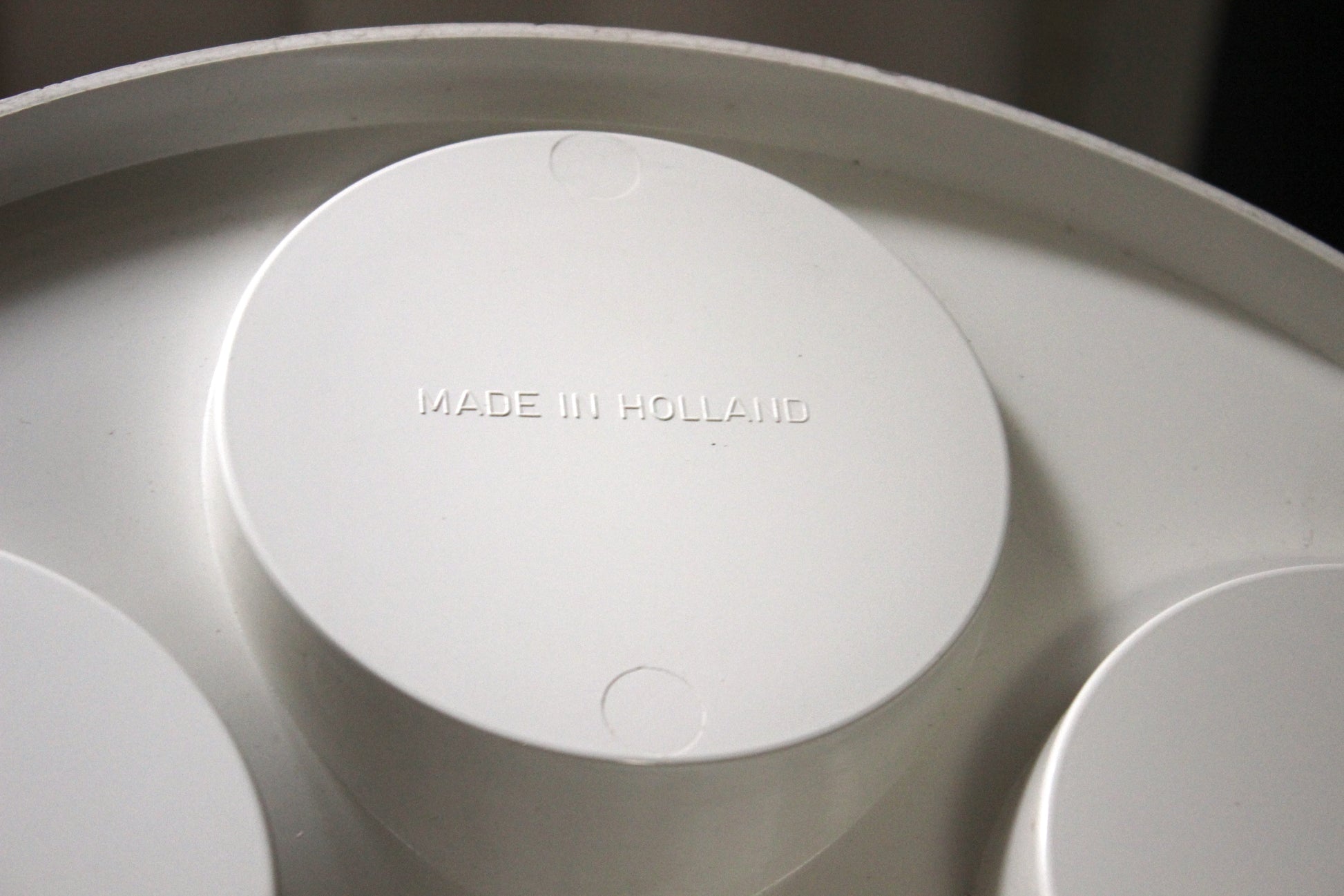 Made in Holland sometime in the glorious plastic decade (aka the 1970s), this modular table was clearly designed by someone who liked their living room a little cosmic. And their drinks were very organized.